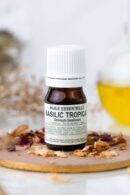 Floribis partage les bienfaits du basilic « feuilles de laitue », ou Ocimum basilicum L. var. pour les botanistes, à sa clientèle. Dans son flacon en verre teinté de 5 ml, l’huile essentielle de basilic est issue de la distillation à la vapeur d’eau des sommités fleuries de la plante cultivée dans le nord-ouest de Madagascar. Cette huile à la saveur fraîche et herbacée libère des notes épicées et anisées. C’est un produit 100 % pure et naturelle.